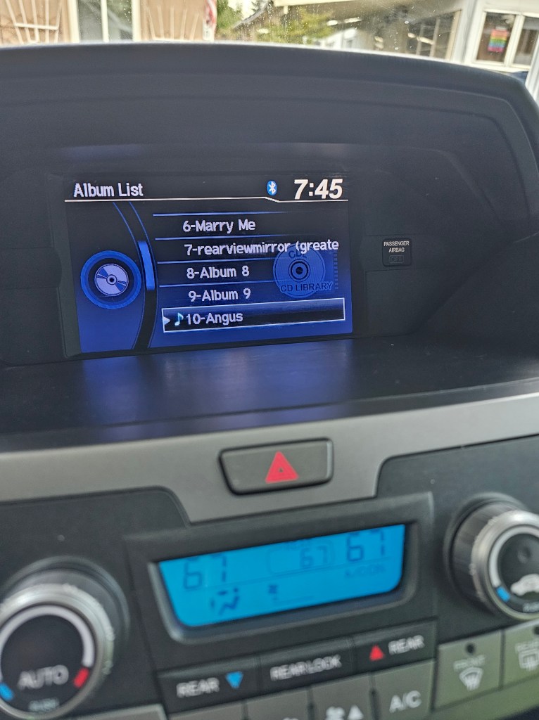 I pressed my rarely used CD button and some other random buttons, finally navigating to the list of CD’s that I had to choose from. Great, many of them were “unnamed” occupied slots. Technology back then couldn’t deal with my burned “mixtapes”, no metadata there. It truly had been a long time since I used any of these car functions to listen to my music. Those unnamed used music slots: the last of my “old school” mixtapes.