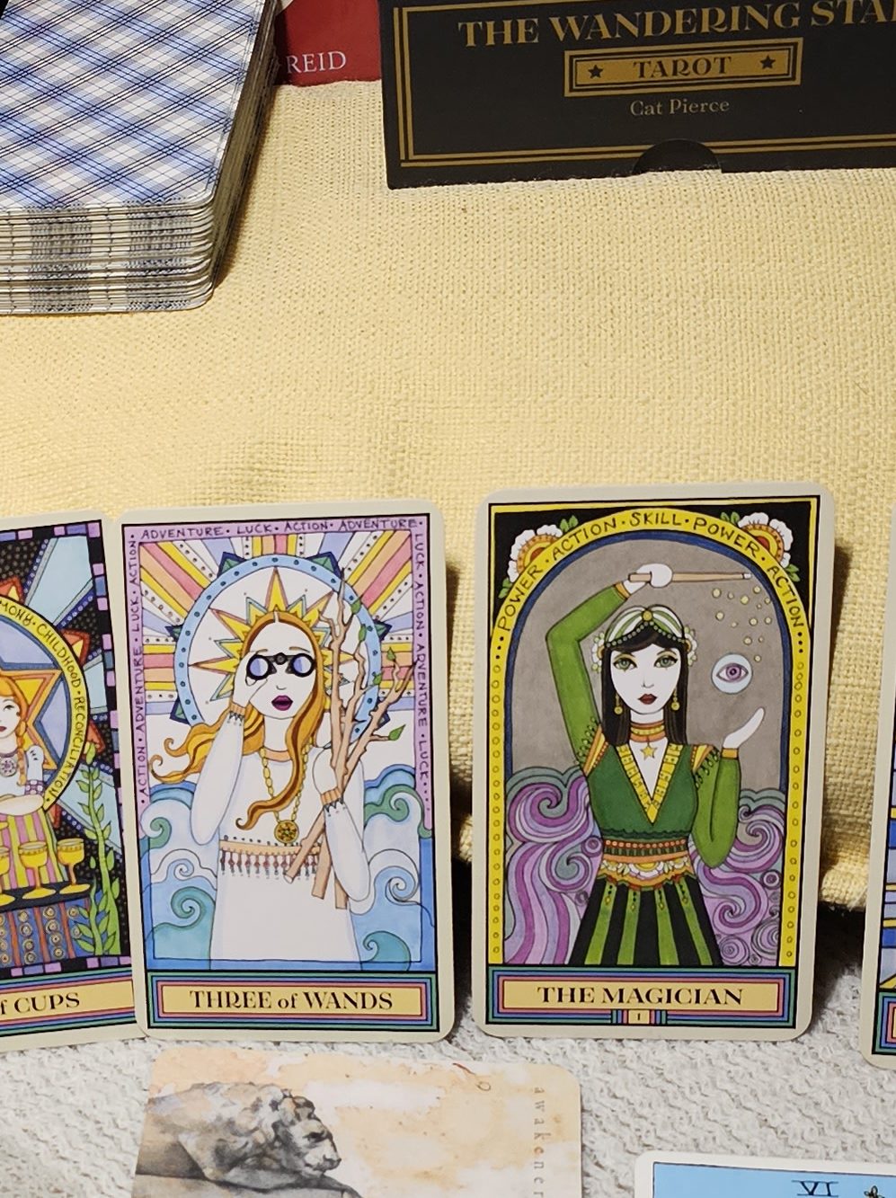 The rest of the second row are the following cards, pulled from The Wandering Star Tarot deck: