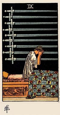 On the second row, the first card drawn is the Nine of Swords, from the Rider Waite deck.