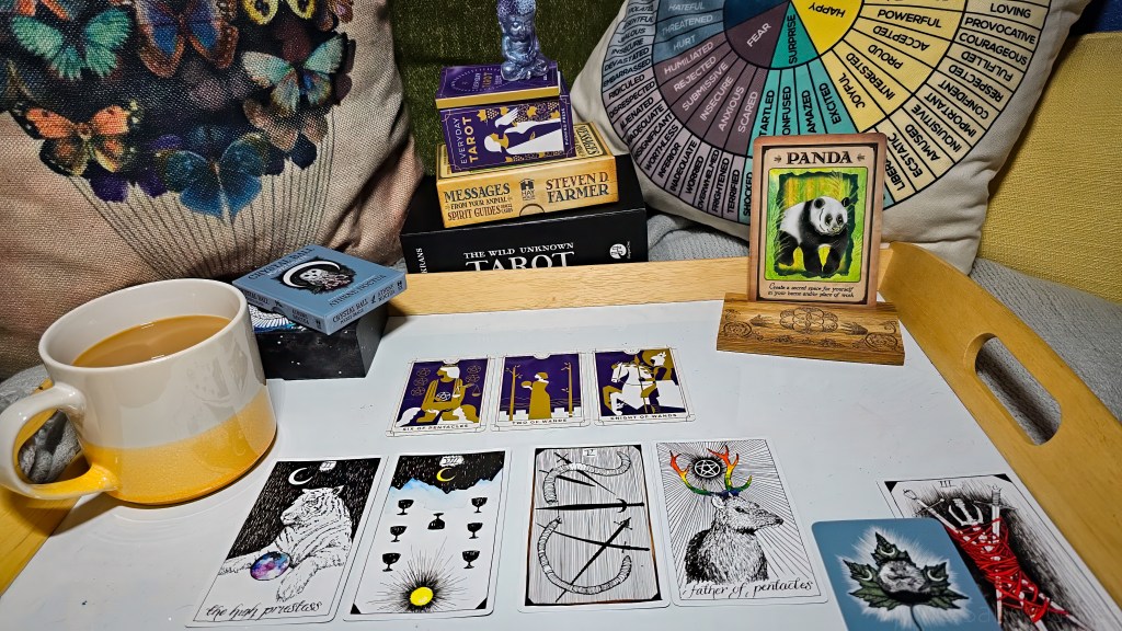 I don’t use the Wild Unknown deck that often and it was while reading the definitions for the second row of cards that I remembered why. This deck’s author doesn’t shy away from being harsh. I absolutely love the author and actually own a few of her decks. This particular deck, though…. Usually hits me in the wrong way. OR, maybe it’s hitting me exactly in the right way.