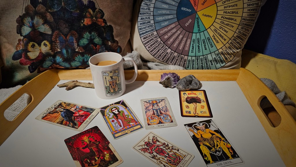 Since it’s the season of ghosts, ghouls, and all things scary, I thought I’d write this post about the Devil card, one of the most seemingly ominous cards in the deck.