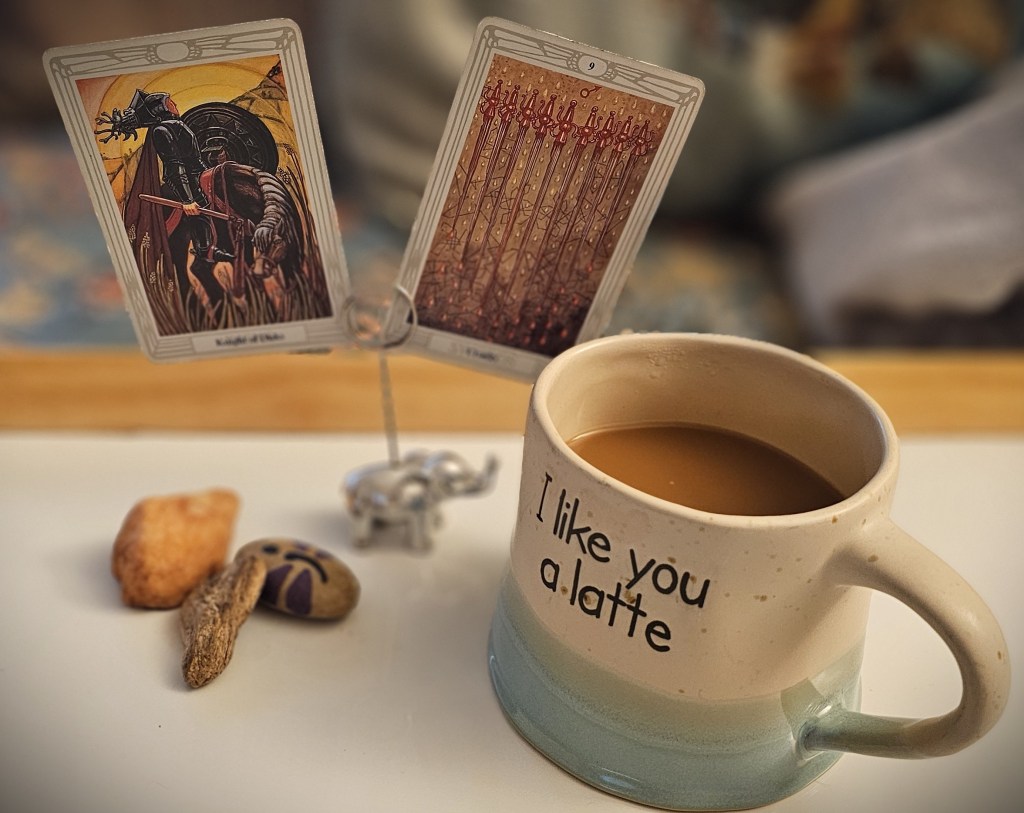 In the Thoth deck the Knight of Swords is seen on his horse in a field. When I look at it, it makes me think the knight is either about to start the day or end the day, since it seems as if the sun is on its way up or down. Either way, it seems as if there is contemplation going on. At the beginning of a journey, we have planning and anticipation. At the end of a journey, there is often reflection and speculation on what went right and what went wrong. I once heard it said that age isn’t a number, it’s life experience. This knight is either using past experience to plan ahead or filing away the new experiences of his journey to better his next one. This is a card of manifestation. To manifest, we first need to have a clear image of what we want or where we’re going. This is a card of harvesting and building new worlds for ourself. In the Thoth deck, the disks represent our external reality, the physical aspects of our life. This card invites us to think about what we want to manifest in our outer world, in regard to areas like our health, finances, creation, or career.
